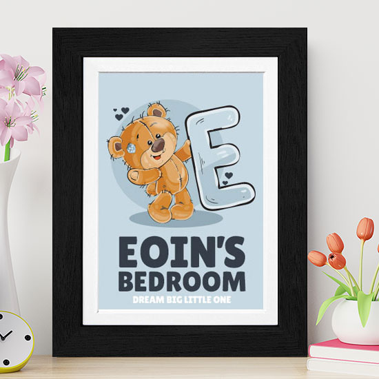 Baby Bear’s Room Personalised Frame, this is a stunning and unique baby gift that the parents and child will love and cherish for years to come. Personalise with the child’s name and we will have the teddy holding their 1st initial.