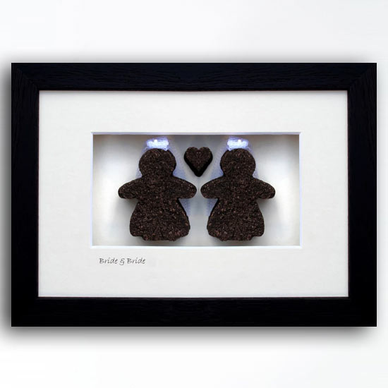 Bride & Bride from Bog Buddies is a great same sex female wedding gift, each one is unique. We can customize the mount with any special greeting or the names of the happy couple. Hand crafted with love in Ireland from real Irish bog.