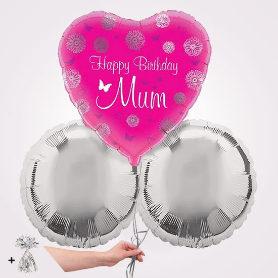 The Happy Birthday Mum Heart Foil Balloon Bouquet is a really fun gift for a birthday celebration. We can send the balloon bouquet directly to the persons home or workplace with a message from you. The balloons all come inflated with helium and tied with balloon ribbons. A balloon weight is attached to keep them grounded.