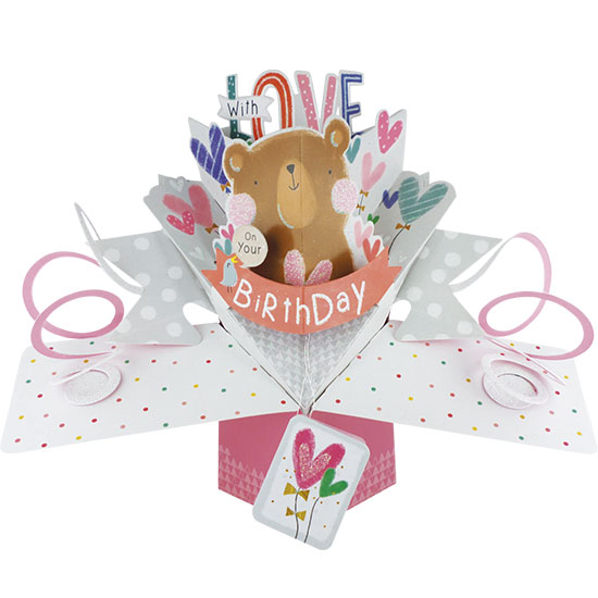 Happy Birthday Pop Up Card (Bear & Birdie with Hearts)