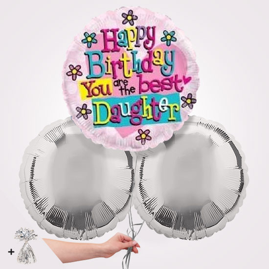 The Happy Birthday You Are The Best Daughter Pink Foil Balloon Bouquet is a really fun gift for a birthday celebration. We can send the balloon bouquet directly to the persons home or workplace with a message from you. The balloons all come inflated with helium and tied with balloon ribbons. A balloon weight is attached to keep them grounded.