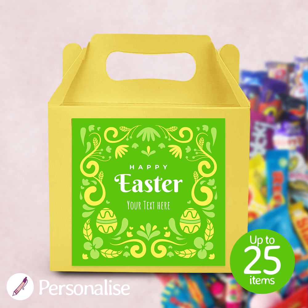 Happy Easter Green Label Mixed Treat Box – Personalised – a yummy array of quality chocolate and sweets in a personalised box
