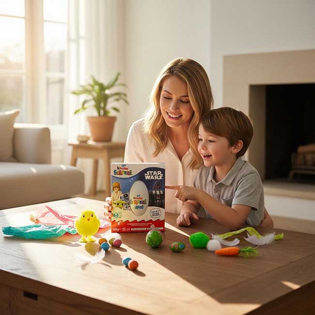 Kinder Surprise Easter Egg – StarWars – Each Kinder Surprise contains a delicious fine milk chocolate shell with milky white lining. Containing a toy! Suitable for vegetarians