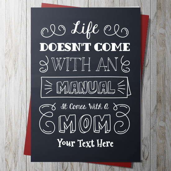 The Mother’s Day Manual Card is a personalised, large, mothers day card you can personalise with any text on the front. For the inside: If you would like us to leave a message (from you) simply type your message in the “Card Message” box