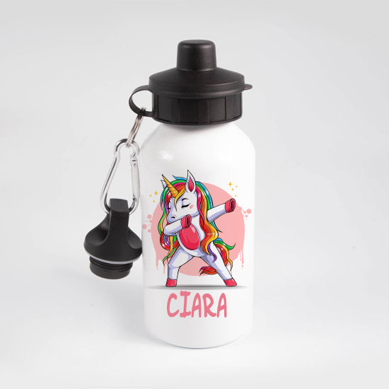 Personalised Be a Unicorn Water Bottle 400ml – 400ml white aluminium water bottle. Features a screw-in stopper and a drink cap.