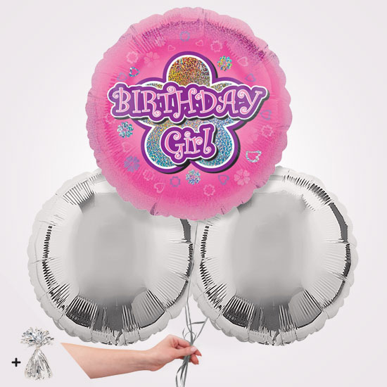 The Pink Flowers Birthday Girl Foil Balloon Bouquet is a really fun gift for a birthday celebration. We can send the balloon bouquet directly to the persons home or workplace with a message from you. The balloons all come inflated with helium and tied with balloon ribbons. A balloon weight is attached to keep them grounded.