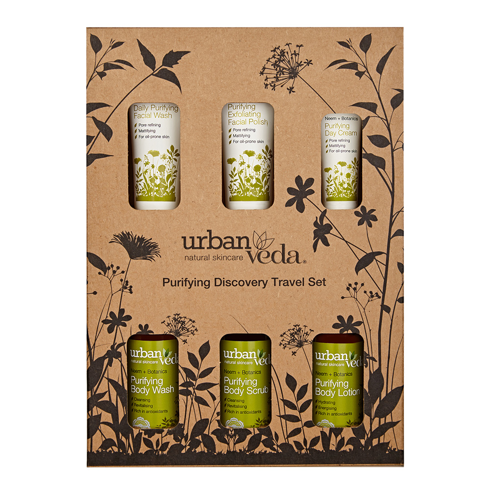 Purifying Complete Discovery Set – Discover the secret of Urban Veda with our Purifying Complete Discovery Travel Set.The perfect way to try the Purifying range, this gift set includes a miniature Daily Purifying Facial Wash, Purifying Exfoliating Facial Polish, Purifying Day Cream, Purifying Body Wash, Purifying Body Scrub and Purifying Body Lotion. Beautifully presented in a branded gift box, these six miniatures are the perfect travel size for accompanying you on your adventures.
