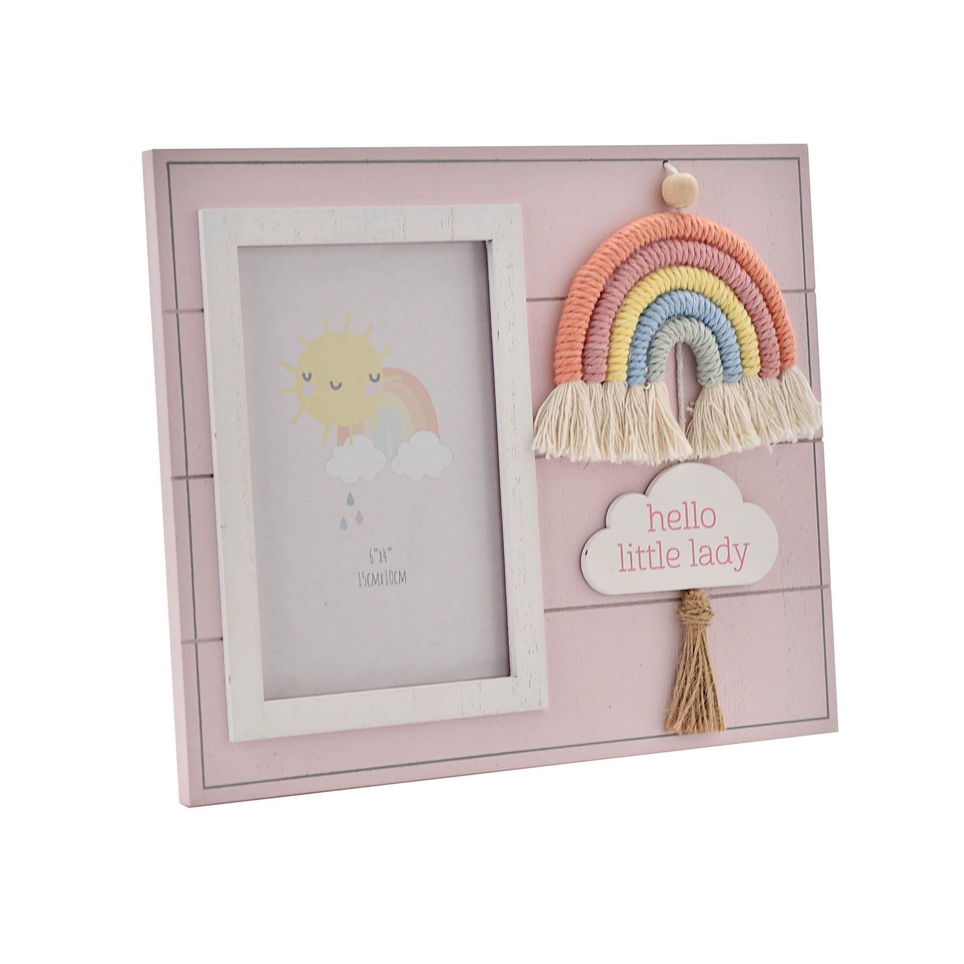 Rainbow Hello Little Lady Frame – This irresistible, textured freestanding photo frame makes little ladies the central focus of any living space.