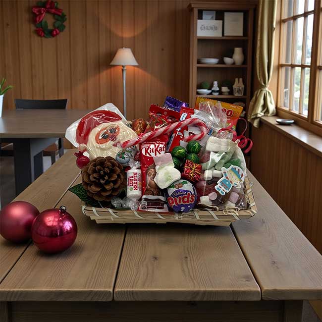 Each hamper is carefully prepared to look full, colourful, and Christmassy — ideal for both kids and adults.