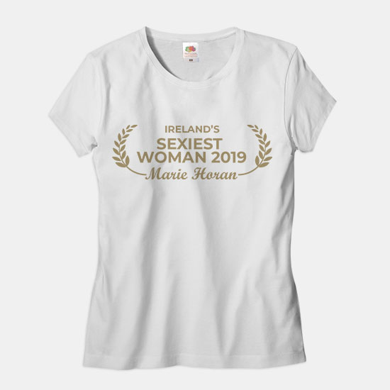 The Sexiest Woman T-Shirt Ladies, tight fit is a Fruit Of The Loom t-shirt. The t-shirts are in the new Fruit Of The Loom style with a longer body length and flattering neckline. Feminine fit with shaped side seams. Cotton / Lycra rib crew neck with taped neckline for comfort. Personalise the t-shirt with your own information.