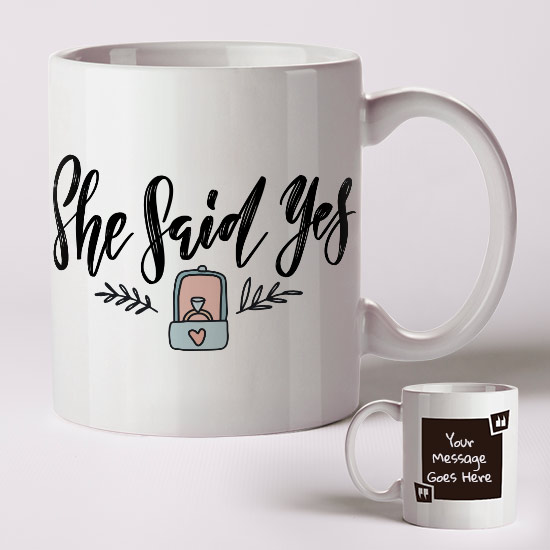 The She Said Yes (Personalised Mug) is a really cute, practical, and unique Engagement gift for someone who got Engaged. You can add your own personal message onto the back. The mug is a high quality 11oz duram dishwasher friendly mug.