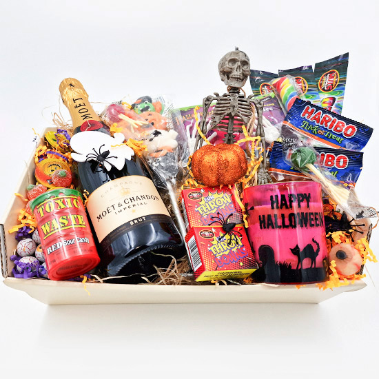 Spooky Sweets, Haunted Candle, and Moët Magic Hamper Comes packed full of treats and Halloween goodies.