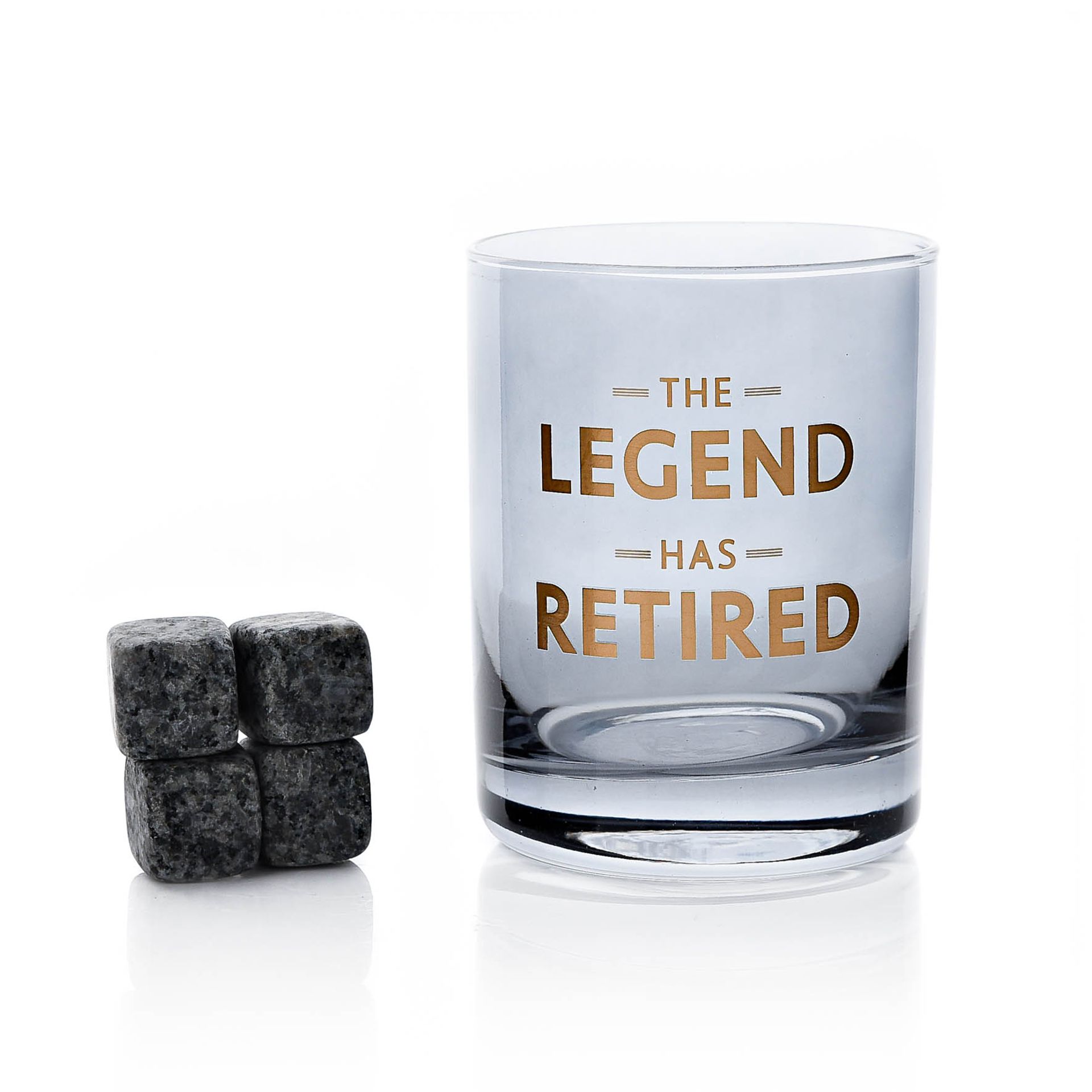 The Legend Has Retired Whiskey Glass & Stones – An amazing option to treat any family, friends, or colleagues that are retiring this whiskey glass gift set features the funny slogan ‘The Legend Has Retired’ in gold foil lettering, as well as some whiskey stones! The perfect gift for whiskey lovers. Not suitable for use in a dishwasher or microwave. Hand wash only.