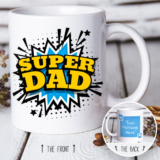 The Super Dad Personalised Mug is a really good, practical, and unique personalised gift for dad. You can add your own personal message to your daddy on the back. The mug is a high quality 11oz duram dishwasher friendly mug.