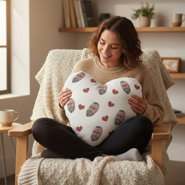 Create a gift that’s as unique as your relationship with our Your Face Personalised Heart Cushion. Add your chosen face to design a fun, meaningful, and completely one-of-a-kind keepsake they’ll treasure.